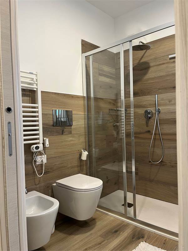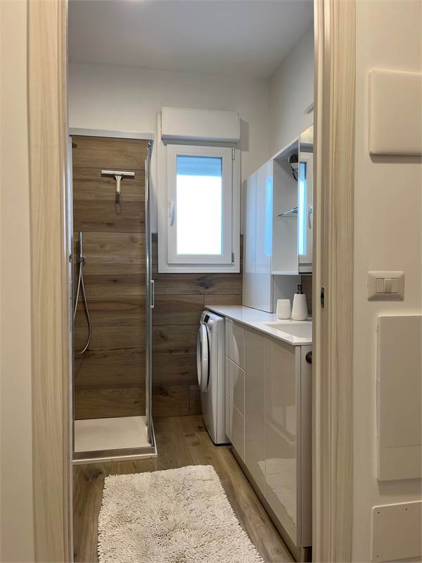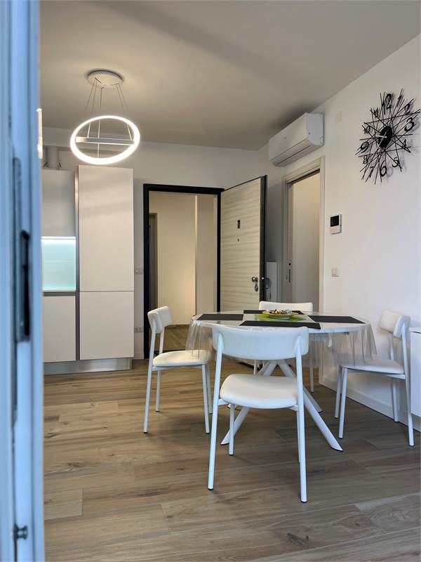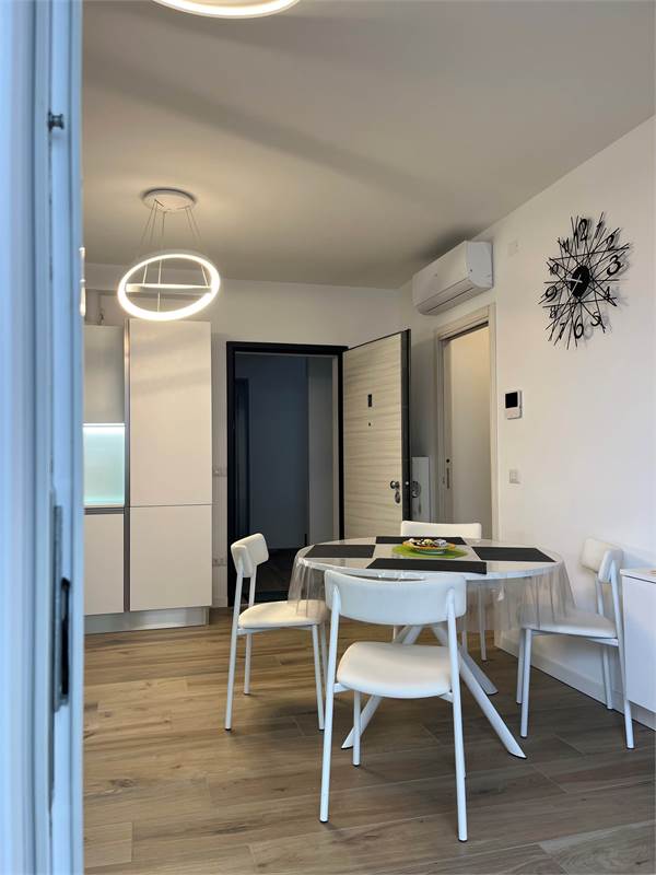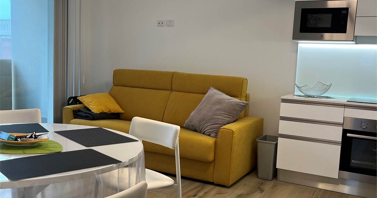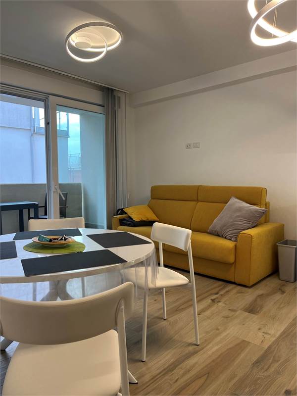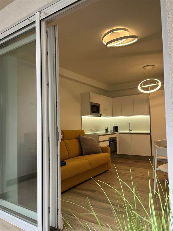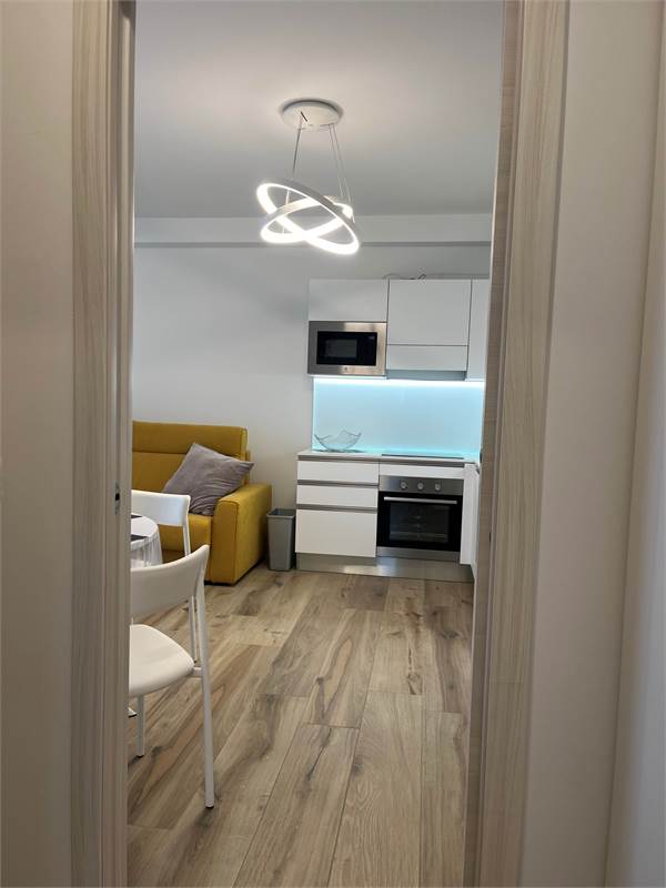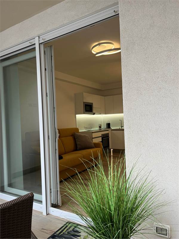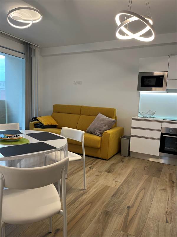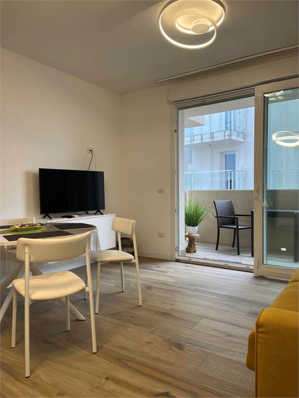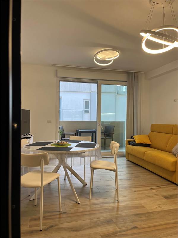 Wir bieten Ihnen eine wunderschöne, 2021 fertiggestellte und geschmackvoll eingerichtete 2-Zimmer-Wohnung zum Verkauf an. Sie verfügt über ein geräumiges Wohnzimmer mit Kochnische, ein helles Fenster mit Zugang zur Terrasse – ideal zum Essen –, einen Flur mit praktischem Einbauschrank, ein Badezimmer mit Fenster und ein Schlafzimmer mit Doppelbett und Blick auf die Terrasse. Die Wohnung befindet sich im vierten Stock der Serena Residence, die barrierefrei mit Aufzug ausgestattet ist. Der große Oststrand ist nur wenige Schritte entfernt, da sich die Residenz in einer kleinen Seitenstraße der malerischen Lungomare Trieste (Hausnummer 39) befindet. Das historische Zentrum erreichen Sie bequem in nur 700 Metern zu Fuß entlang der Strandpromenade. Zur Wohnung gehört außerdem ein privater, unüberdachter Parkplatz. Sie ist ab sofort bezugsfertig und dank der effizienten Wärmepumpenheizung und der Außenisolierung, die für erhebliche Energieeinsparungen sorgen, auch im Winter komfortabel. Vereinbaren Sie noch heute einen Besichtigungstermin.